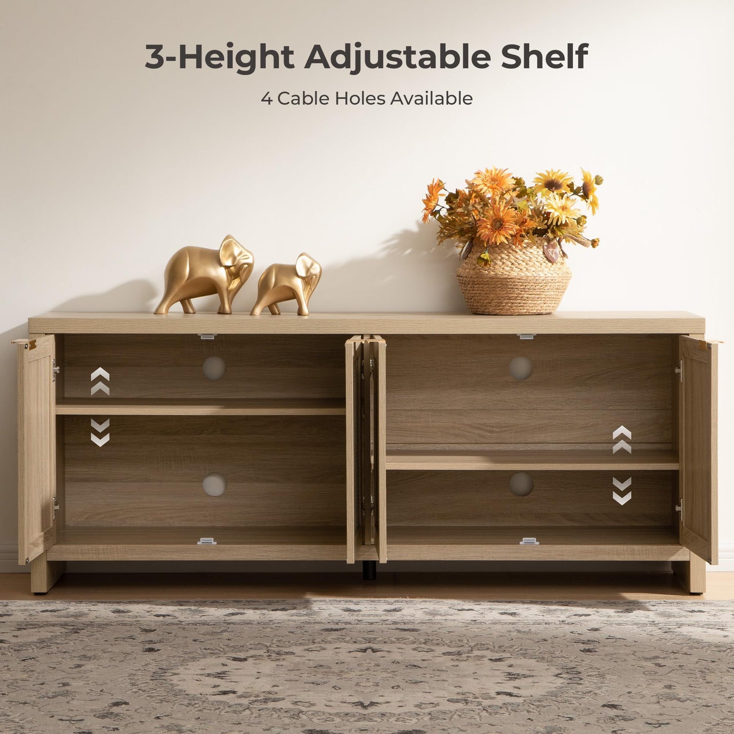 Boho TV Stand with Rattan Cabinets for 45-65 Inch TVs