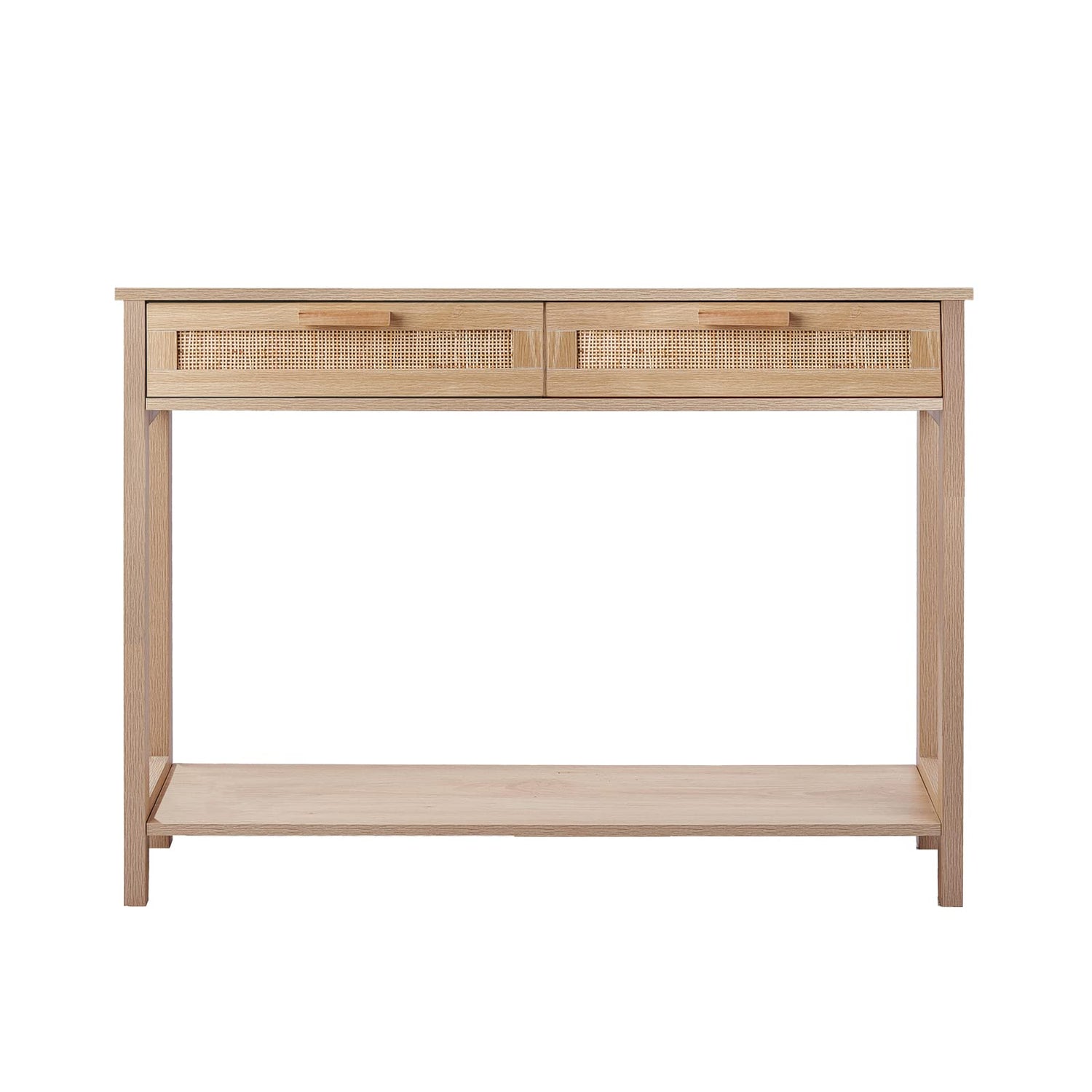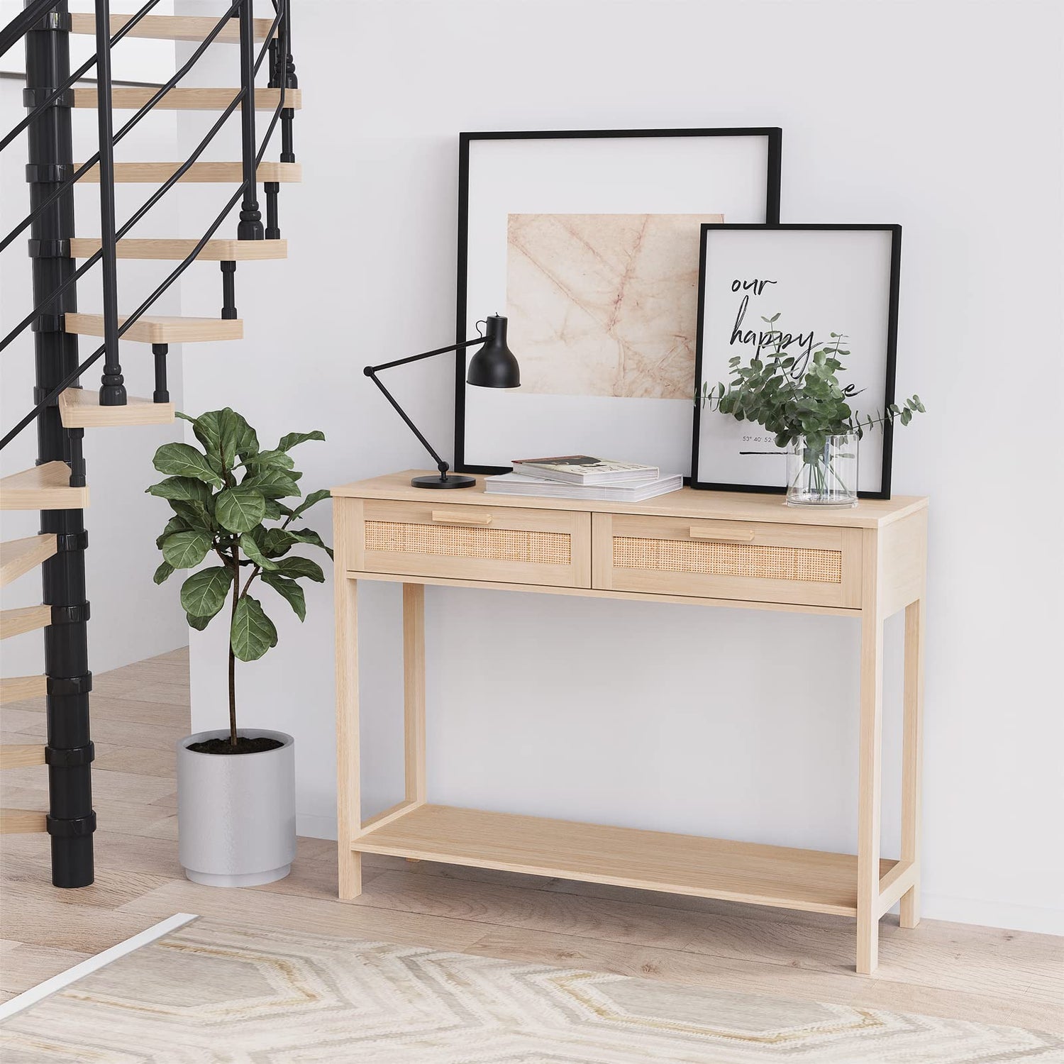 CREATIVELAND Console Table, 2 Drawers Hamilton Rattan Console Table, Entry Storage Rustic Sofa Side Table for Living Room, Entryway, Hallway Foyer, Durable Modern Wood Furniture Decorative