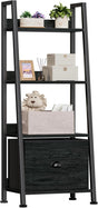 - Metal ladder bookshelf with an additional large fabric drawer which is light and soft, matches 3 and 4 tier shelves to store books, toys or other personal items, not only to prevent children from accidentally bumping into corners and injuring themselves, but also to make full use of vertical space to keep your home, office, apartment tidy and organized.