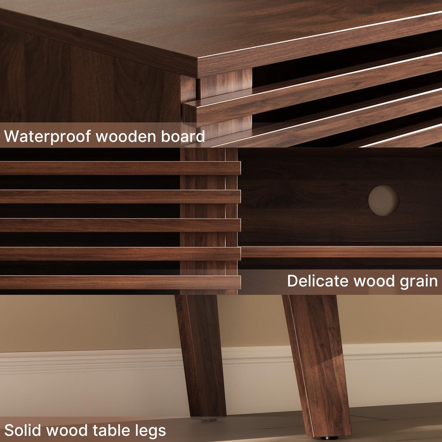 Elevate your living space with this sophisticated mid-century modern TV stand, expertly crafted to accommodate 50, 55, or 60-inch televisions. The retro-inspired design features clean lines, warm walnut finish, and functional storage solutions that seamlessly blend style with practicality.