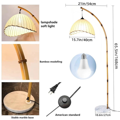 Floor lamp Mid Century Rattan Retro Floor lamp Bohemian Style LED Tall lamp for Living