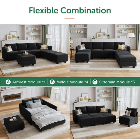 Modular Sectional Couch Sofa, Convertible U Shaped Couch with Storage Ottomans,