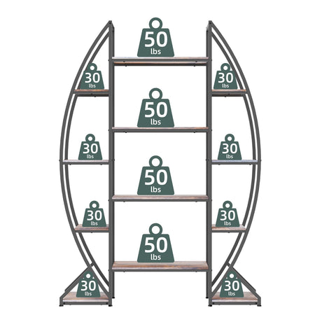 Large Oval Bookshelf – 70” Tall, 5-Tier Industrial Metal & Wood Bookcase
