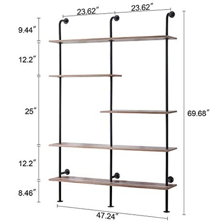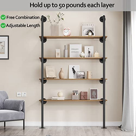 Industrial Iron Pipe Shelf Wall Mount, Farmhouse DIY Open Bookshelf