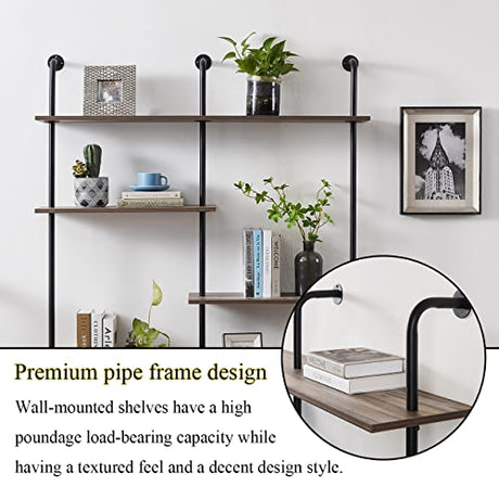 Industrial Floating Shelves Wall Mount,36in Rustic Pipe Wall Shelf,3-Tiers Wall Mount Bookshelf