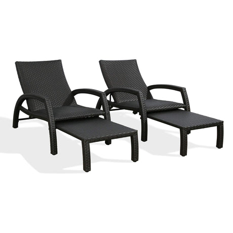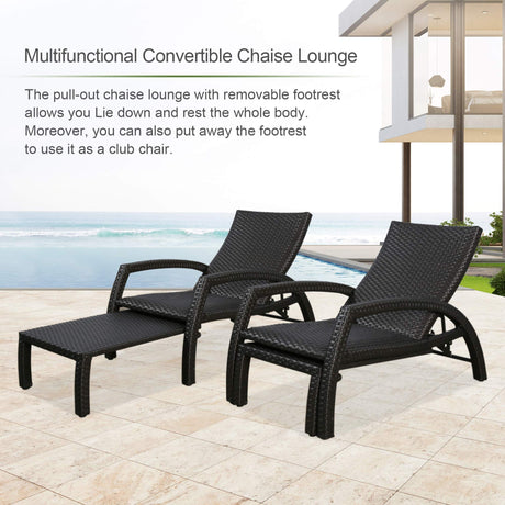 2PCS Patio Chaise Lounges and 1PC Table Set Aluminum Adjustable Lounge Chairs