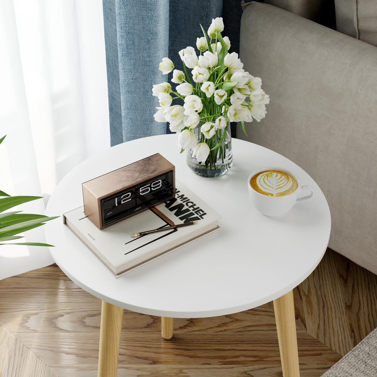 Round Side Table, White Nightstand Coffee End Table for Living Room, Bedroom - 1natural está agotado y se enviará tan pronto como vuelva a estar disponible.