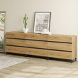 • Spacious Storage Space This 9 drawers dresser has ample storage space that allows you to keep your living room neat and tidy. Boasting three spacious drawers, it provides plenty of room to store everything from your remote controls, DVDs, gaming consoles, to other miscellaneous items. Each drawer glides smoothly, ensuring easy access to your items.