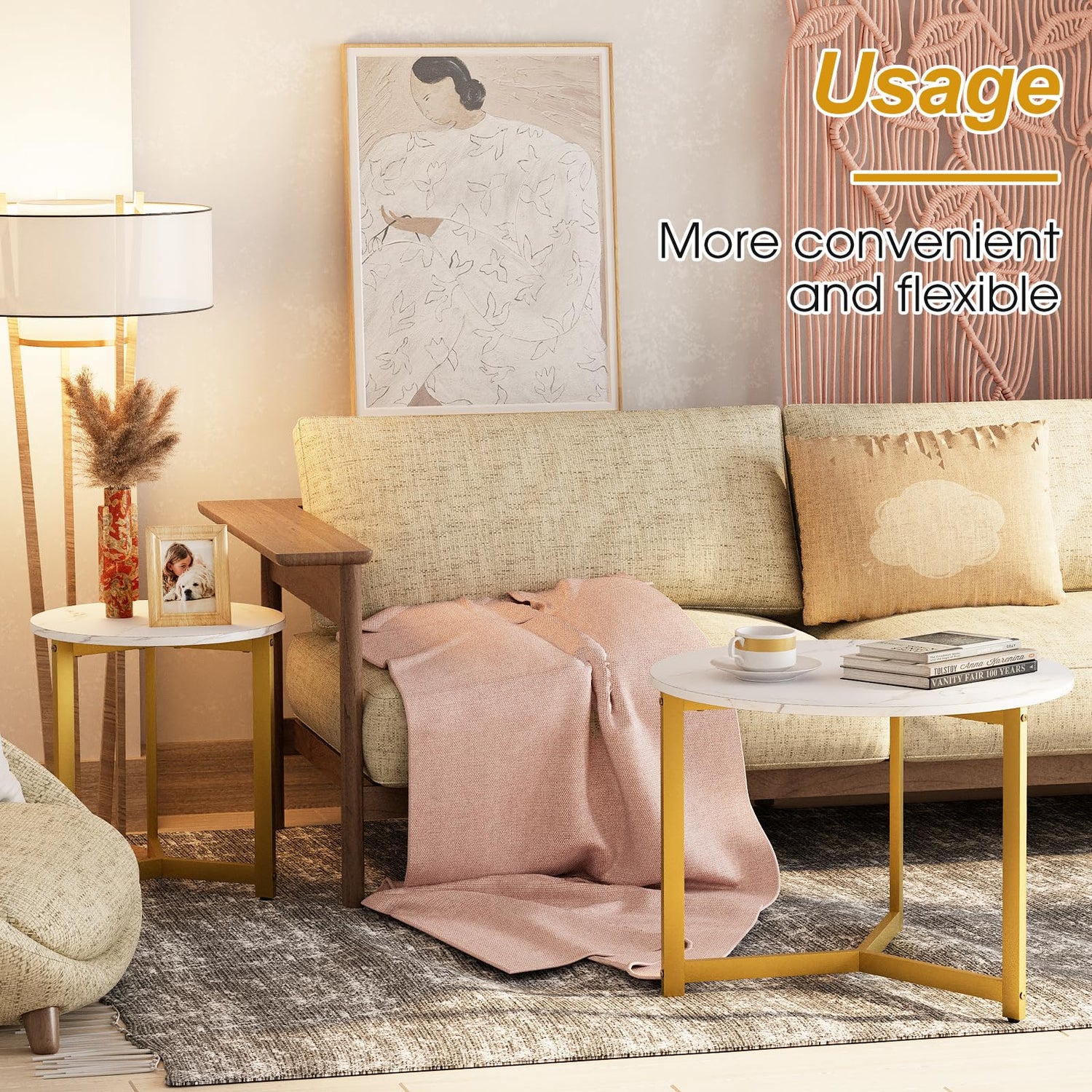 Coffee Table White Round Coffee Table for Living Room, Faux MarbleTable Set of - White Gold está agotado y se enviará tan pronto como vuelva a estar disponible.