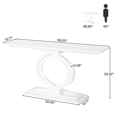 59 Inches Console Table for Entryway, White Farmhouse Console Table for Living Room