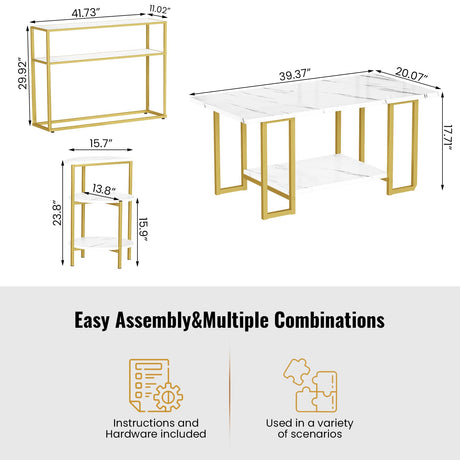 3 Pieces Modern Coffee Set, with Console Table