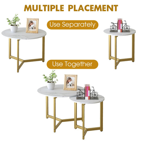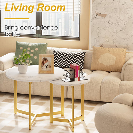 Coffee Table White Round Coffee Table for Living Room, Faux MarbleTable Set of