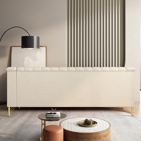 87in Beige White Sofa, Couches for Living Room 21in Extra Deep Seats