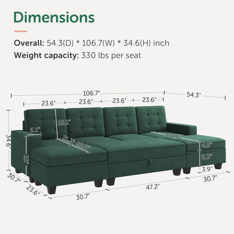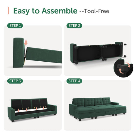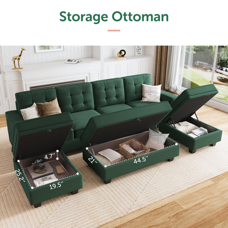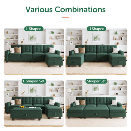 Sectional Sleeper Sofa Velvet U Shaped Couch with Storage Ottomans for Living Room