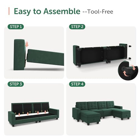 Velvet Sectional Couch with Storage U Shaped Couch with Chaises for Living Room,