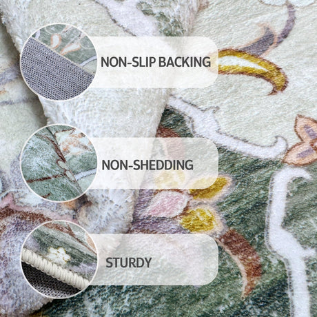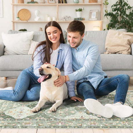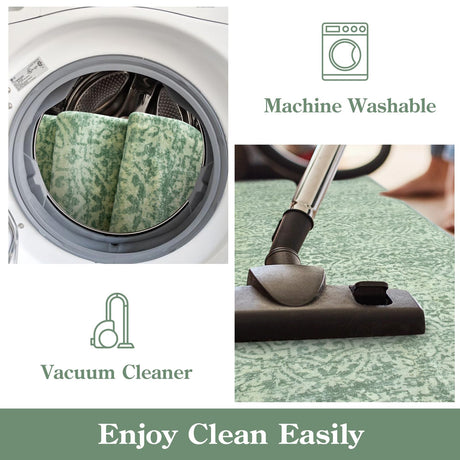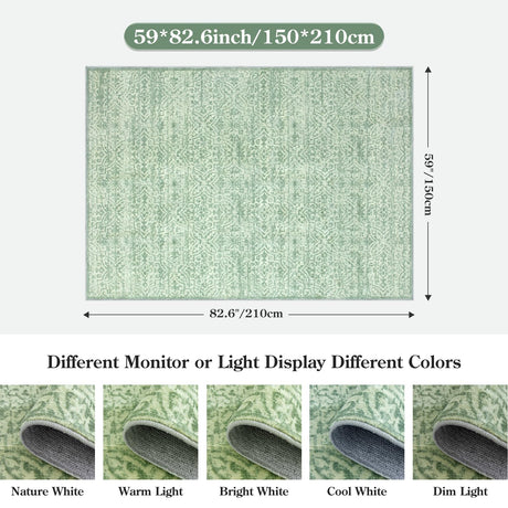 Washable Area Rug 5'x7' - Green Vintage Area Rugs for Living Room, Bedroom, Office,