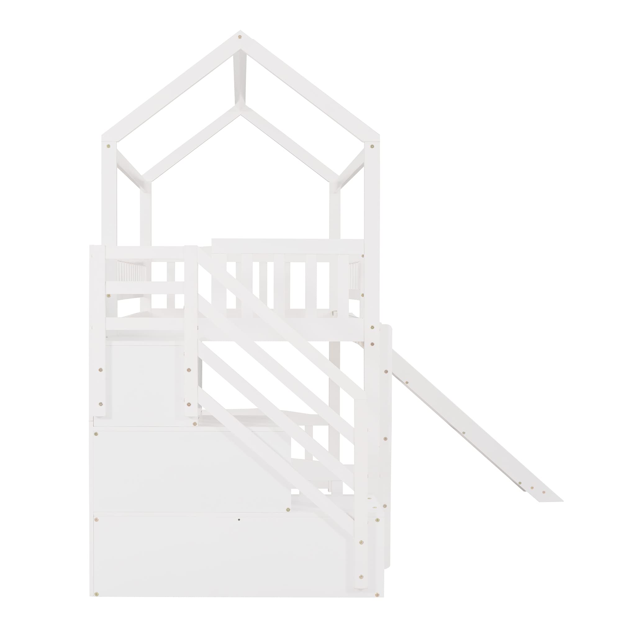 House Bed Loft Bed with Slide, Twin Loft Bed with Stairs and Storage
