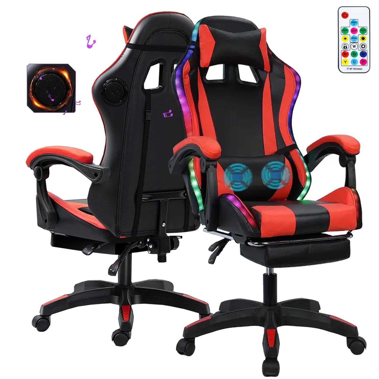 Gaming Chair with Bluetooth Speakers and LED Lights - Ergonomic High Back with Massage and Lumbar Support