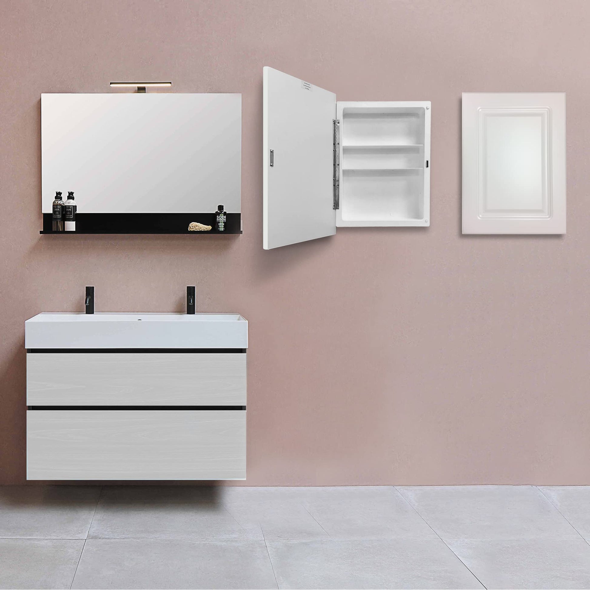 White Recessed Medicine Cabinet with White Wooden Door Panel (16" x 22")
