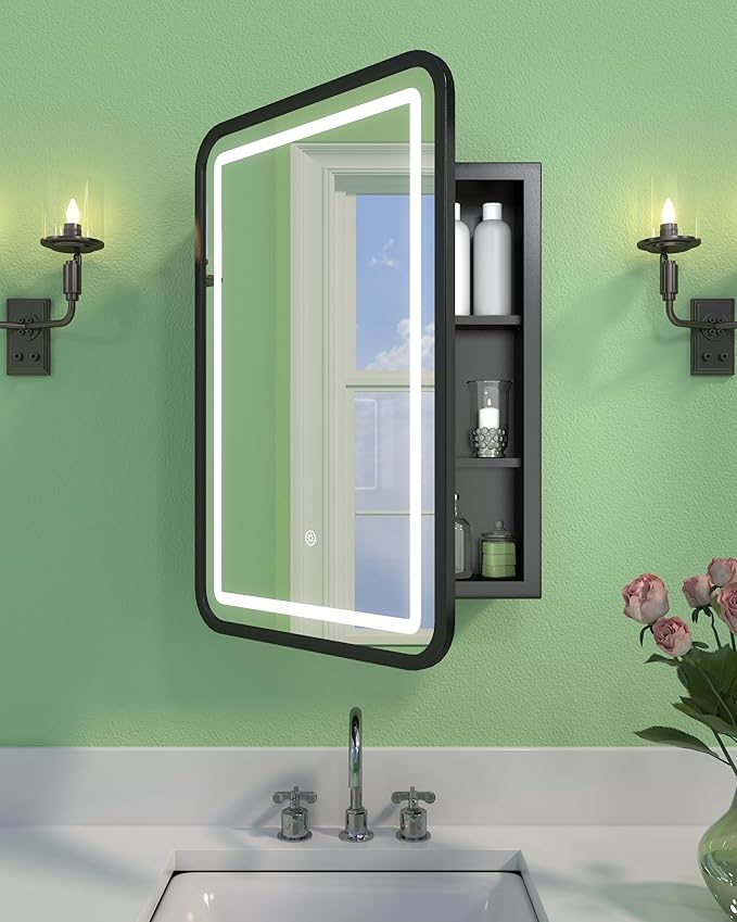 Black Led Bathroom Medicine Cabinet with Mirror 20 x 26 Recessed or Surface Mount