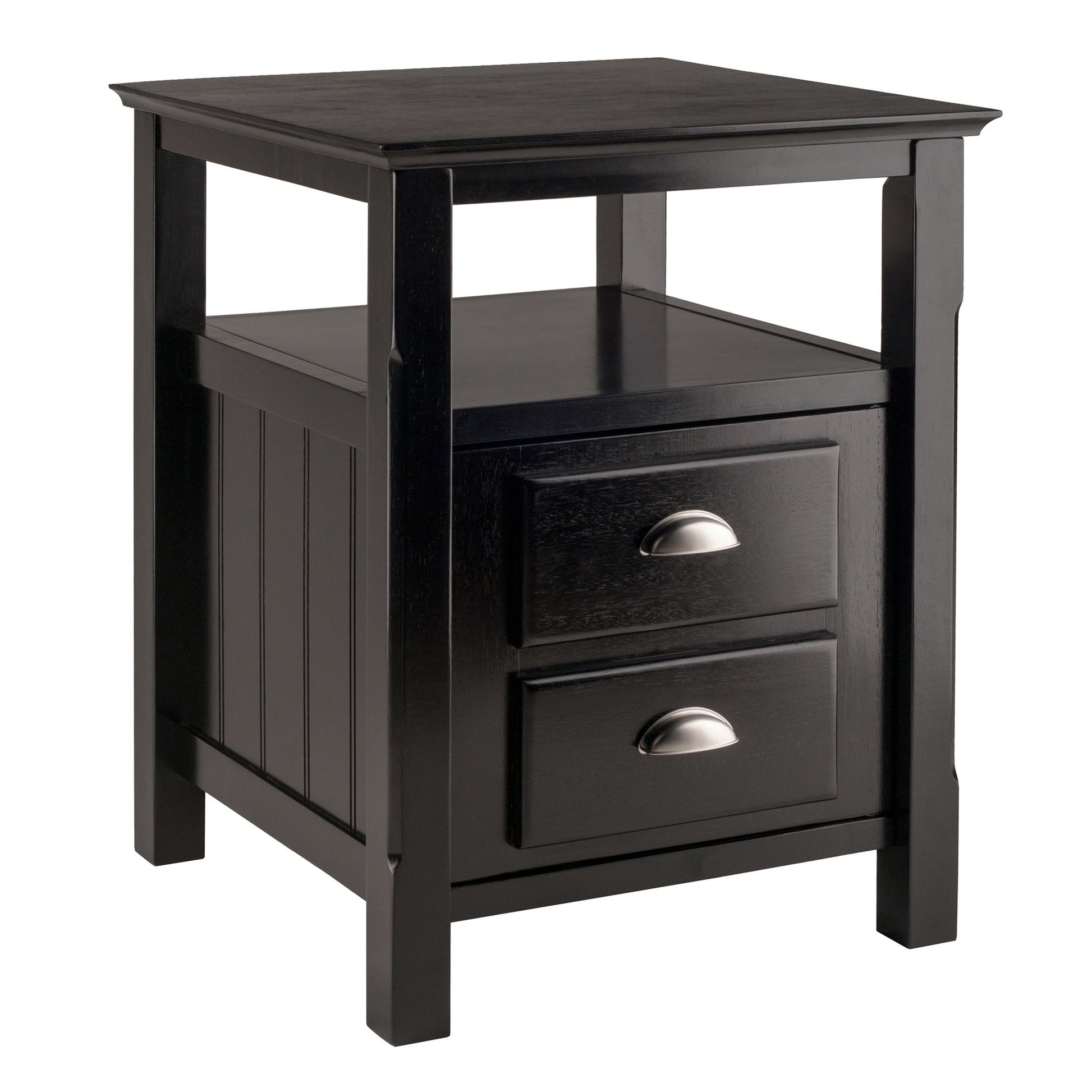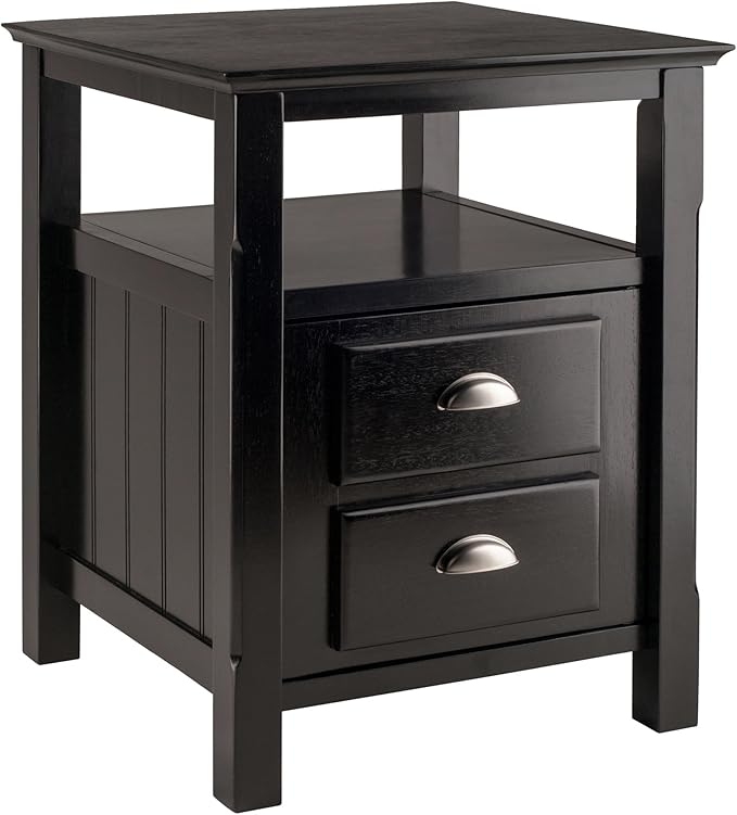 Solid Wood 2 Drawer Timber Night Stand Black Finish