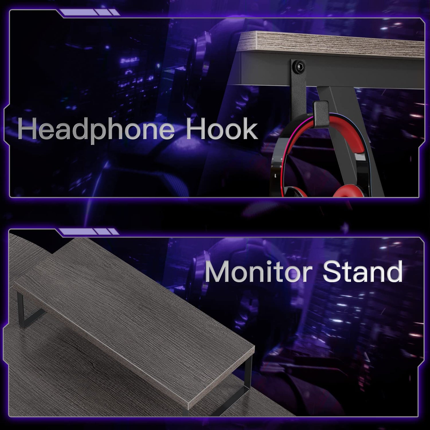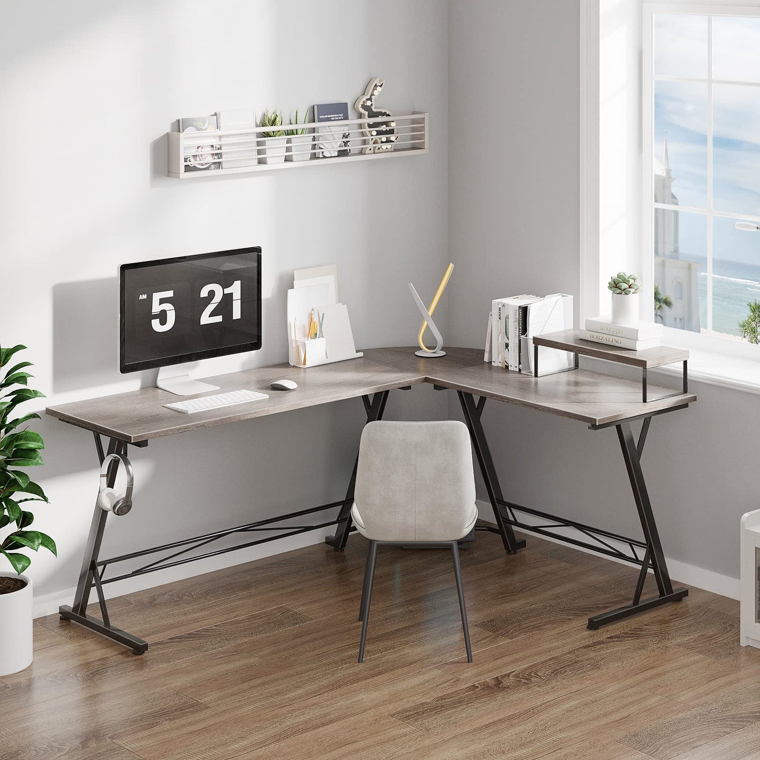 - Spacious Working Space This L Shaped desk is equipped with a monitor stand and an iron hook to extend the desktop space. You will enjoy a spacious operating space for studying, working and Gaming.