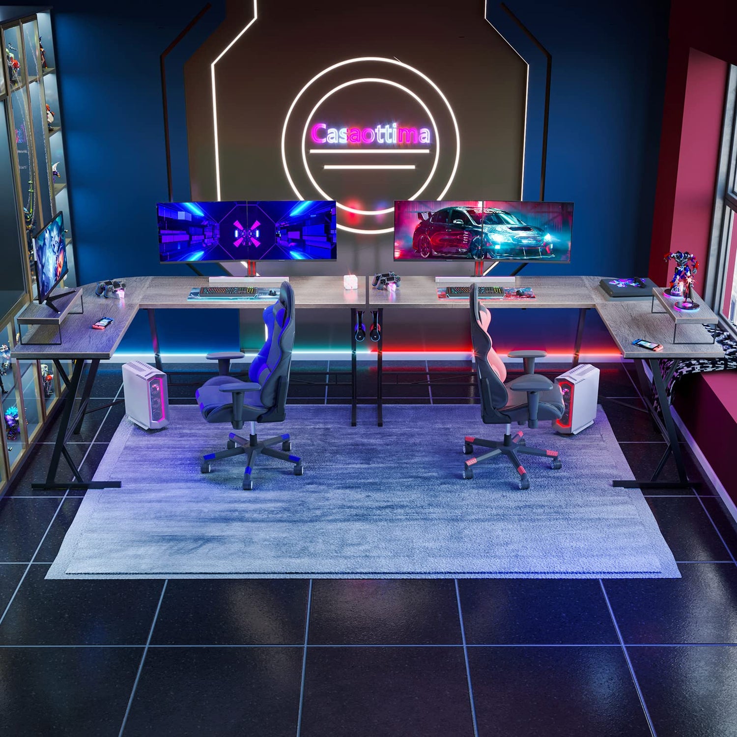 Gaming Desk L Shaped Computer Desk, Corner Desk for Home Office with Monitor Stand 66"
