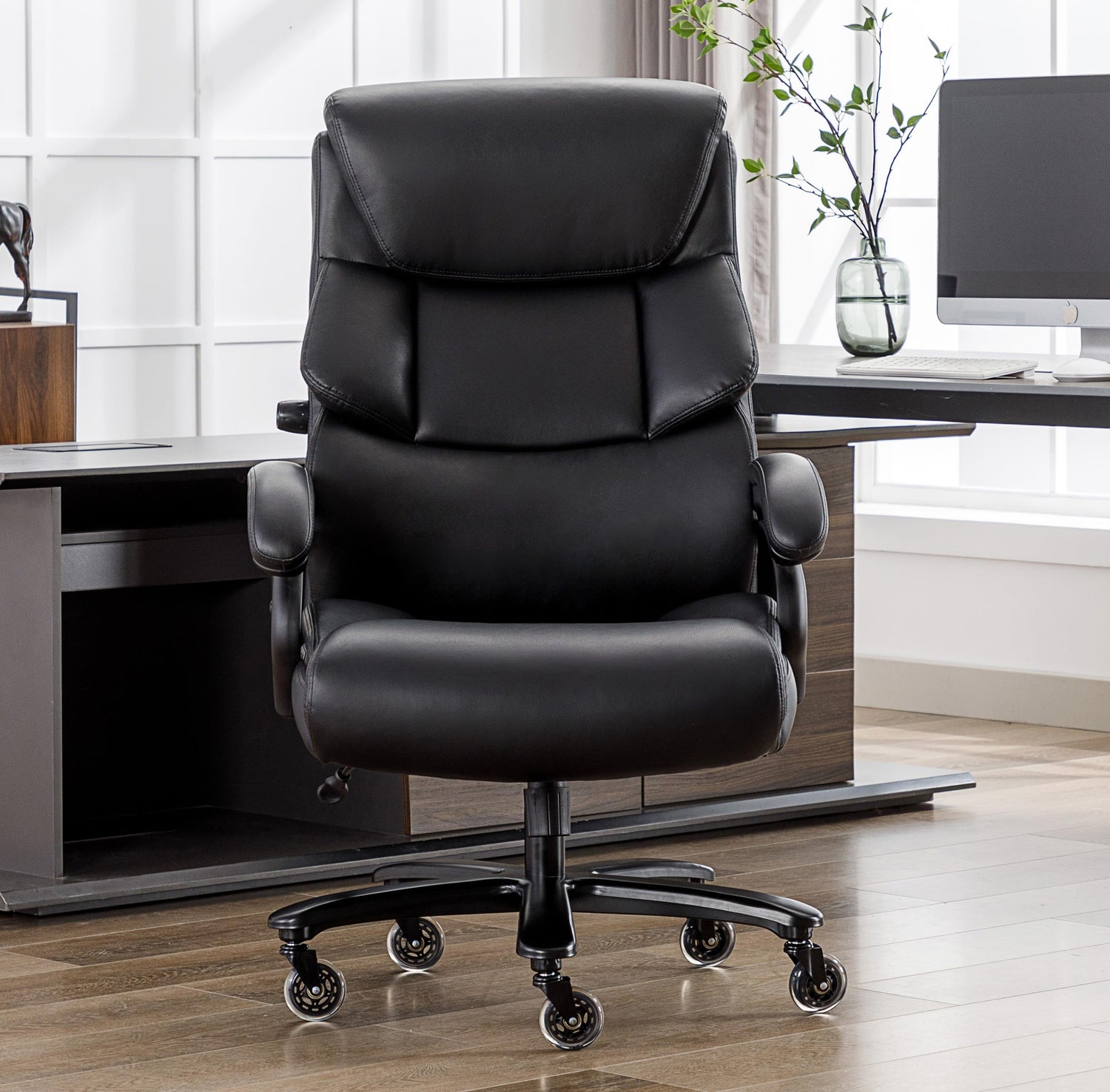 Office Chair Black Leather Ergonomic High Back Big and Tall Executive Home Office Chair