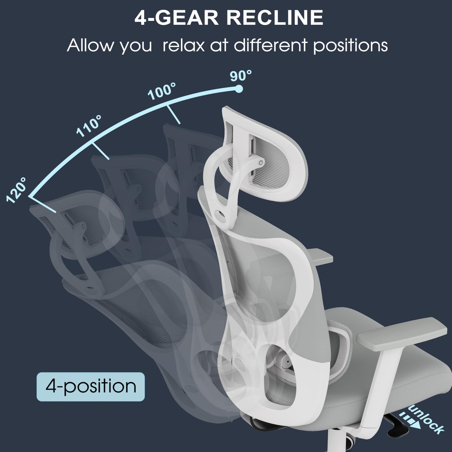 - Adjusting has never been so effortless! The office desk chair offers Dynamic Lumbar Support with its 300g dual-layer mesh. It can be set and locked at 3 distinct heights, spanning a total adjustment range of 1.8 in. For a quick reset, simply lift to the highest (unlock mode) and gently pull down. It means you can find different lumbar support while working or relaxing,stay away from back pain. More height adjustments is shown in the video.
