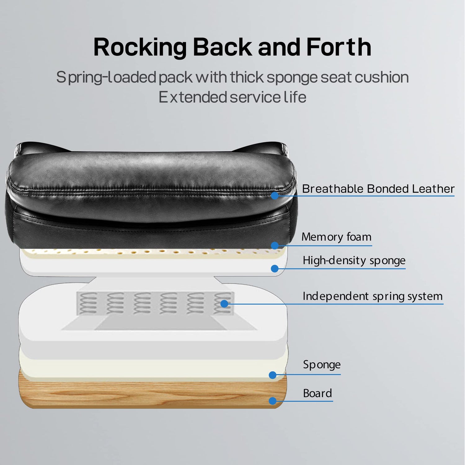 • Breathable bonded leather with memory and high-density foam;