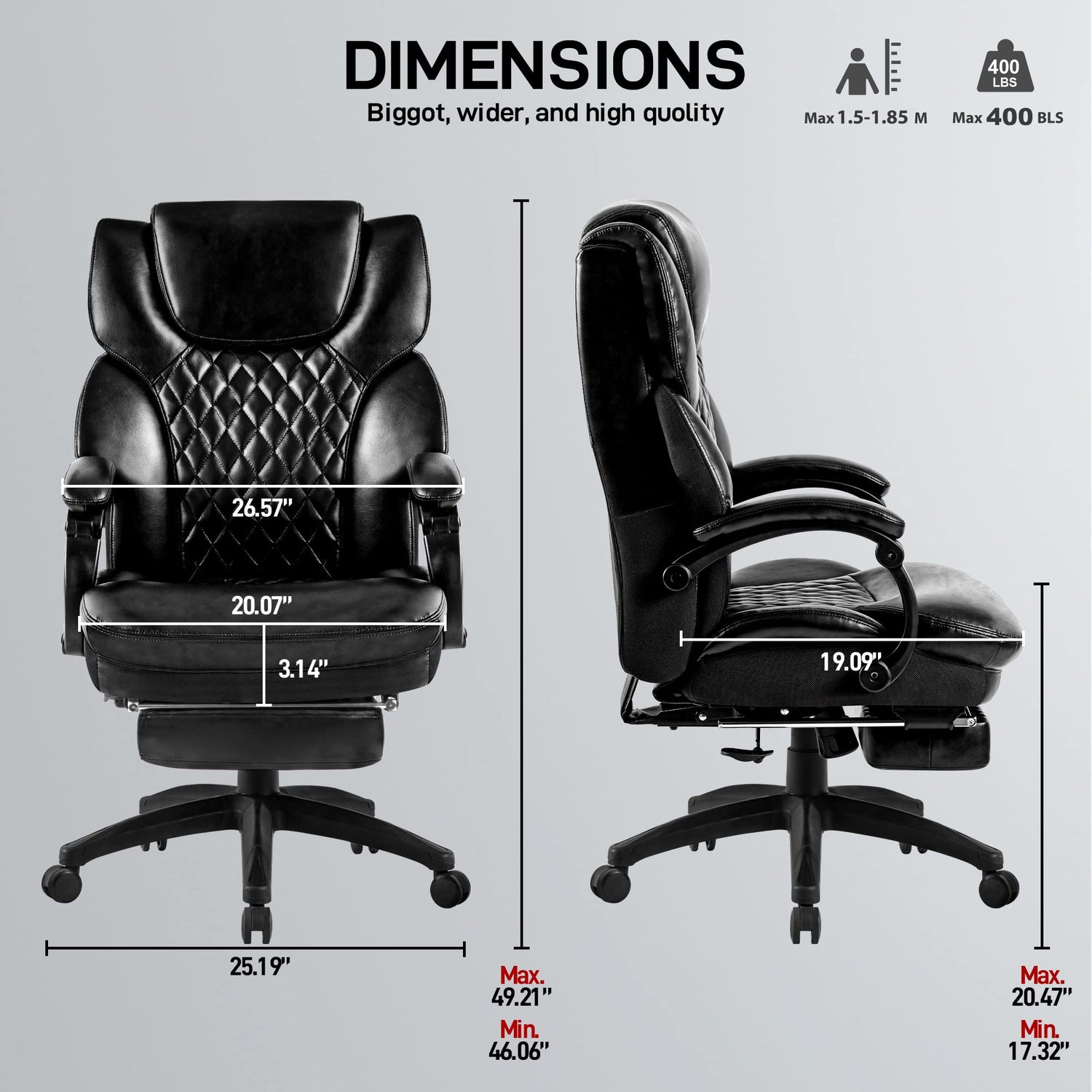 High Back Big & Tall 400lb Office Chair with Footrest Bonded Leather – Bircata