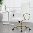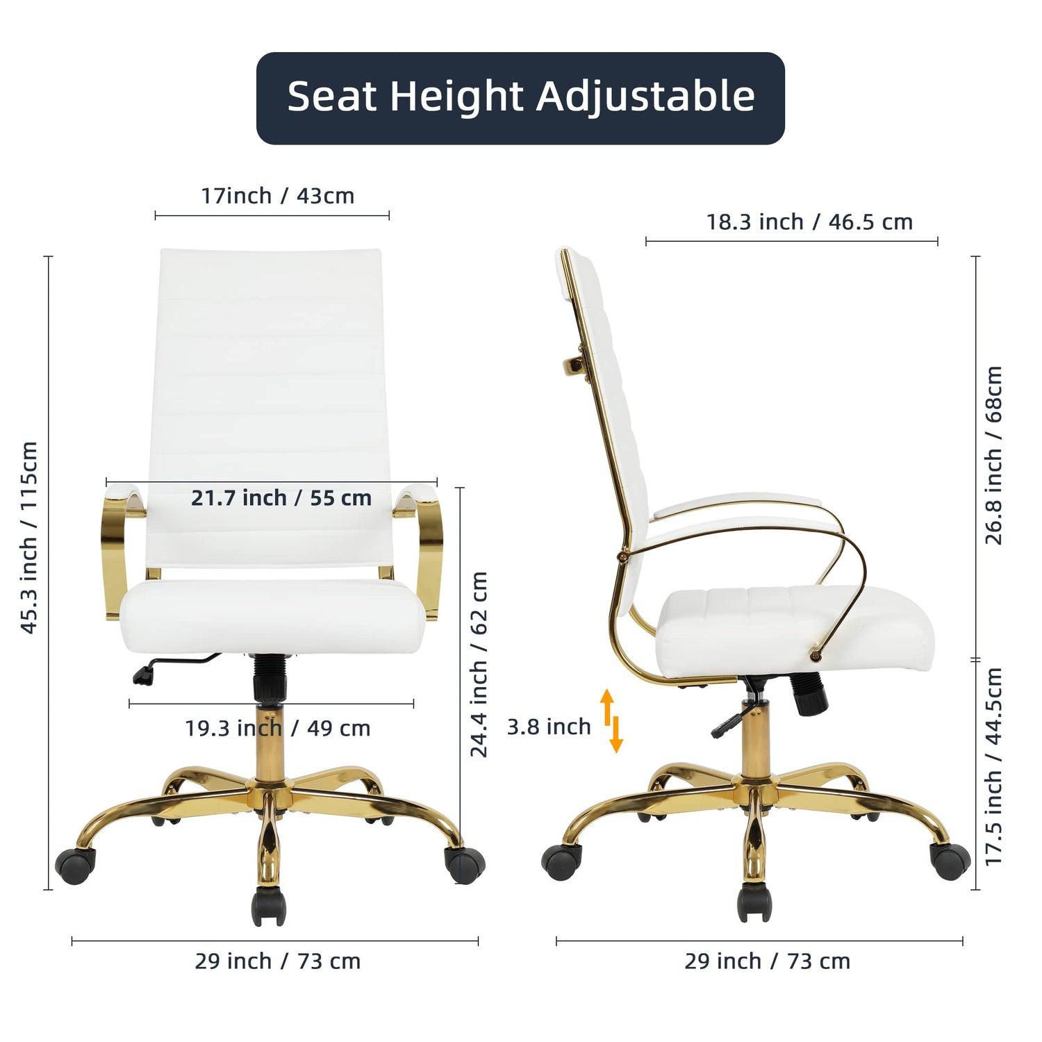 Elevate your workspace with this premium high-back executive office chair, designed to deliver superior comfort and professional style throughout your workday. Featuring luxurious ribbed PU leather upholstery and an elegant gold-tone frame, this chair combines sophisticated aesthetics with ergonomic functionality.