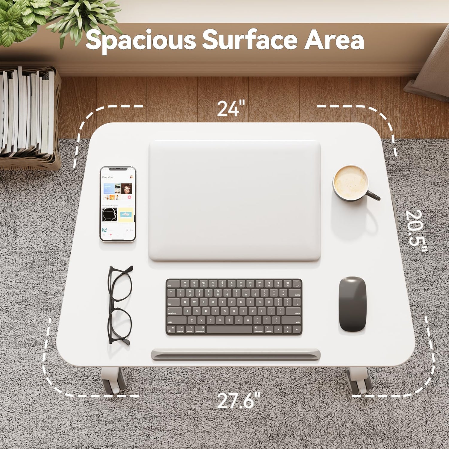 - Spacious Work Space -- The irregular desktop (width: 20.5", length: 27.5"/23.6") surface has enough space which can be used for laptops or tablet, mouse, keyboard, books, painting etc. Moving load capacity up to 22 lbs. Plus, the non-slip pads can support laptops securely when the top is tilted