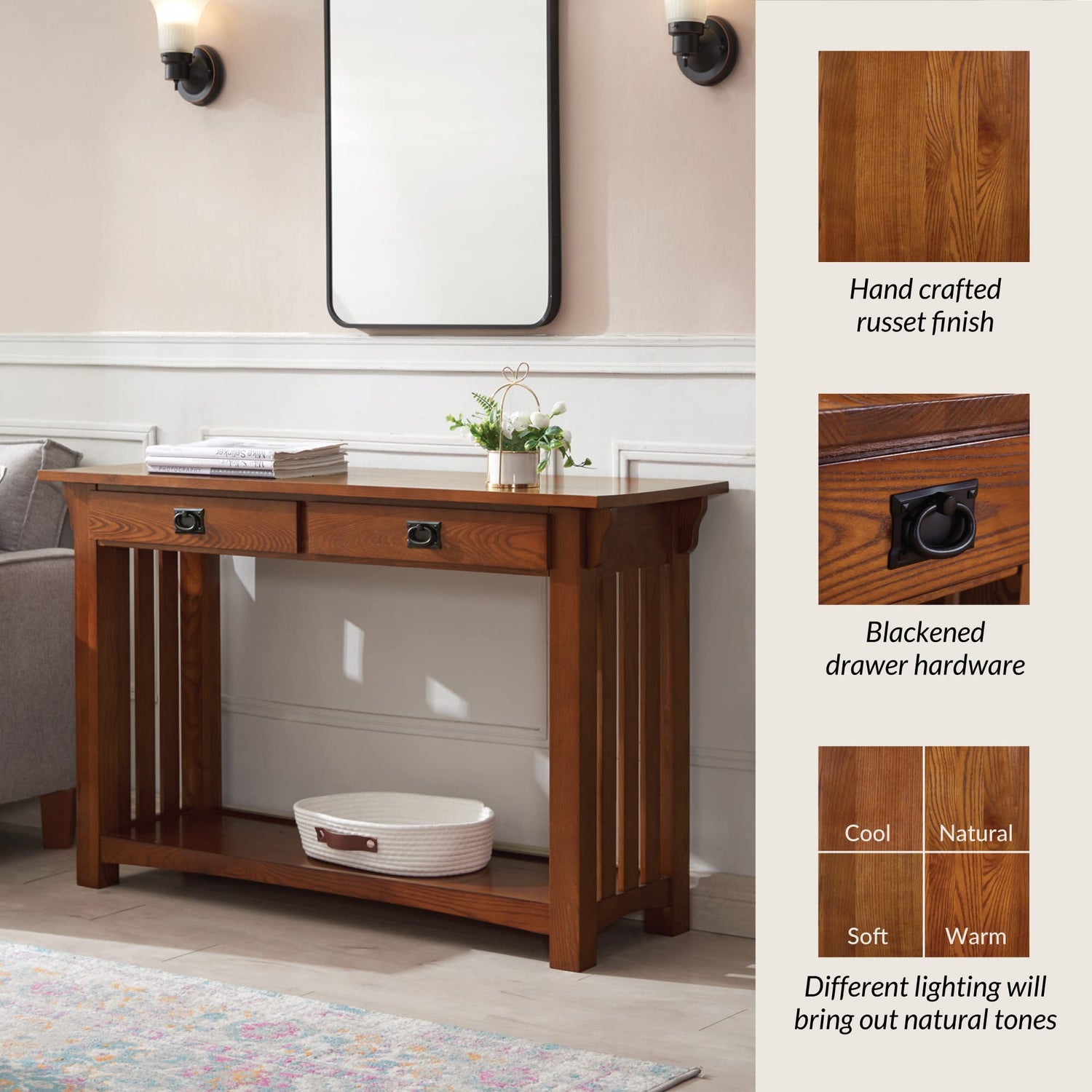 Leick Home 8233 Mission Console Table for Entryway, Wood Sofa Table, Made with Solid Wood, for Living Room, Hallway, Office, Bedroom, Medium Oak Finish