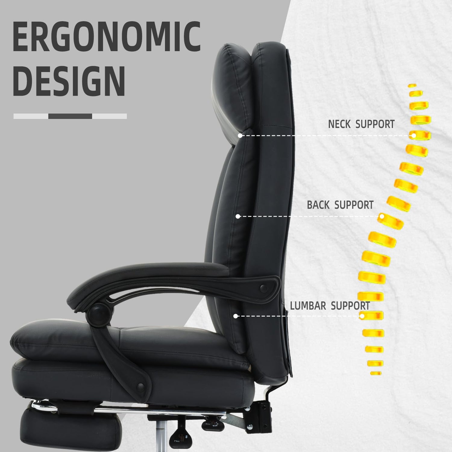 - The ergonomic office chair equip a dual-layered sponge seat cushion. The big office chair backrest and independent lumbar support gently wrap around your body ,support your lower back, thoughtfully designed for the big and tall office chair to keep you comfortable during long hours of working, studying, or gaming. The leather office chair provides unparalleled comfort. Moreover, this executive chair with leg rest adds an extra dimension of relaxation to your workspace.