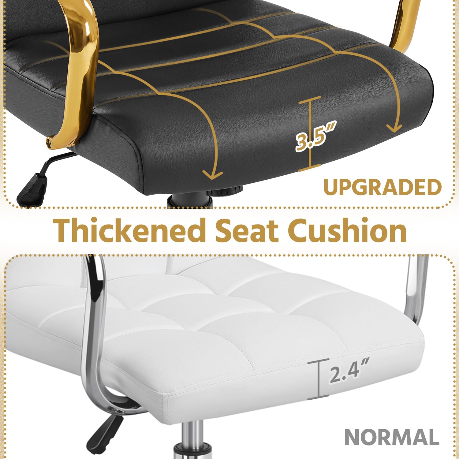 Elevate your workspace with this premium mid-back executive office chair, expertly crafted to deliver exceptional comfort and sophisticated style throughout your workday. The supple PU leather upholstery paired with elegant gold-tone legs creates a refined aesthetic that complements any professional environment.