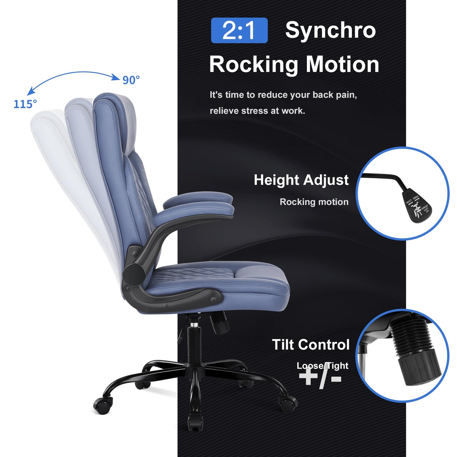 - Our executive office chairs are made with high-quality materials. The PU leather is comfortable, gentle on the skin, and wear-resistant, without irritating. The strong metal feet add a touch of sophistication and improve the overall quality of the product. They are more solid than traditional plastic feet and provide a secure seating experience. The PU silent wheels are wear-resistant, can rotate 360°, and protect the floor while allowing for smooth movement on carpets.