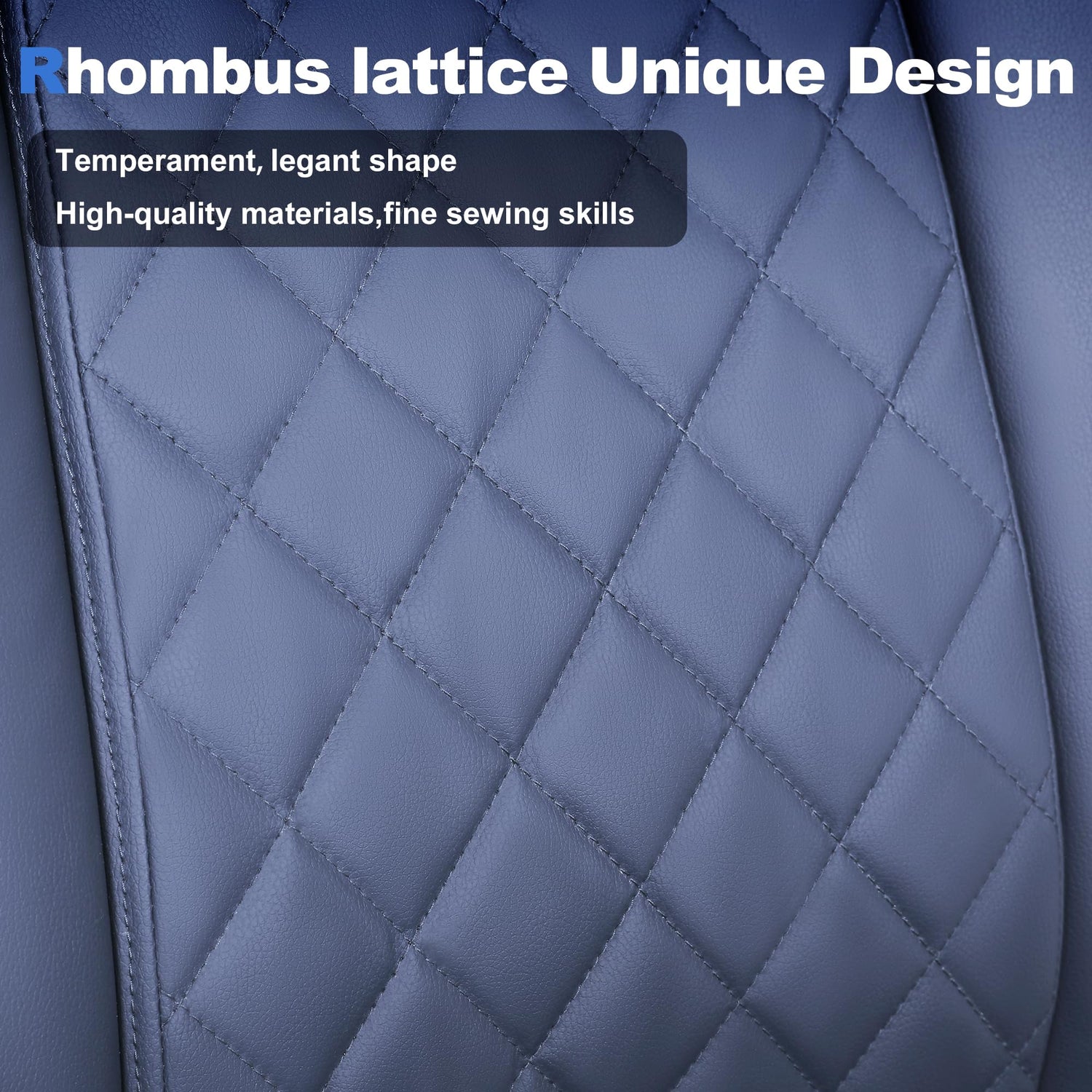 - The high back office chair is designed according to the curve of the human body, fitting the structure of the human body. The huge headrest provides wide-ranging neck support, and the diamond grid design adds elegance and temperament. The home office chair is made with exquisite sewing technology, giving it a high-end and unique appearance. The double cushion design ensures a soft and comfortable sitting experience.