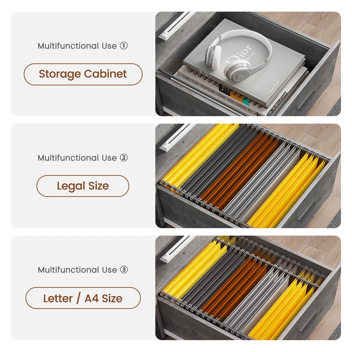 - Ample Storage SpaceComing with a file drawer, printer cabinet and 2-tier storage shelves, with powerful storage space. File cabinet can hold letter /A4/ legal size files. This solidly constructed L-shaped computer desk could hold printers, scanners, fax machines, and any other office machine, keeping the printer or scanner within easy reach of your desk to free up the workspace. CPU stand protects the host from moisture and dust. This L-shaped computer desk is economical and meets different storage needs.