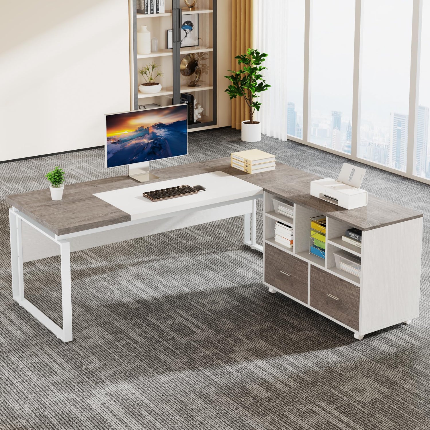 L-Shaped Desk with Drawers, 63" Office Desk with File Cabinet - Gray & White está agotado y se enviará tan pronto como vuelva a estar disponible.