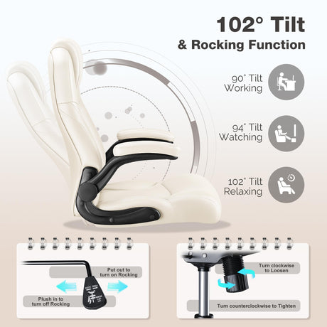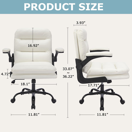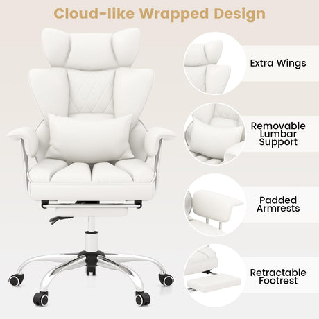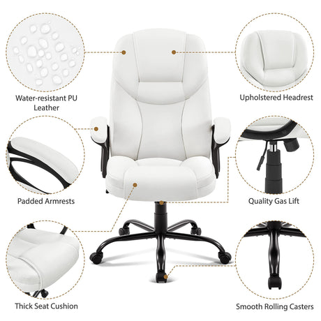 White Executive Office Chair - High Back PU Leather Desk Chair