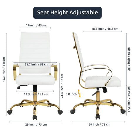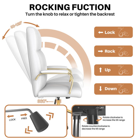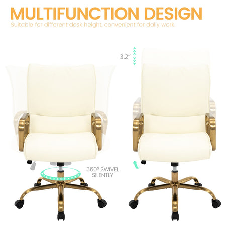 White and Gold Office Chair - Memory Foam High Back Executive Desk Chair