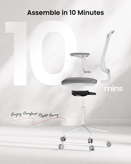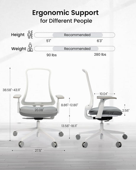 Ergonomic Office Chair with Foam Cushion & Adjustable Armrests - White