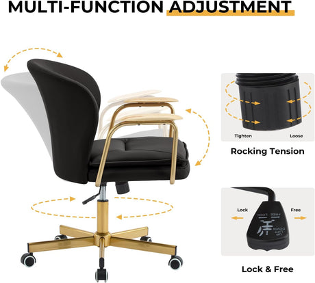 Leather Office Chair with Adjustable Swivel & Golden Legs