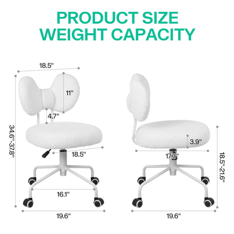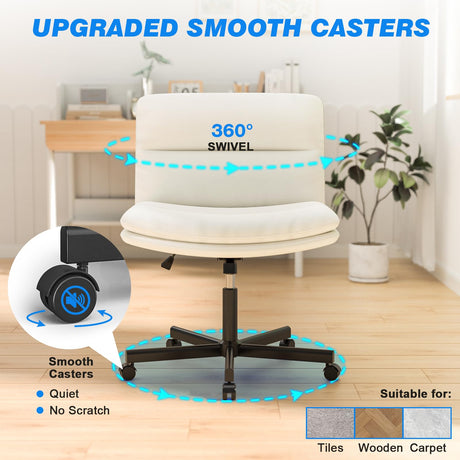 Armless Desk Chair with Wheels - Adjustable Swivel Office Chair