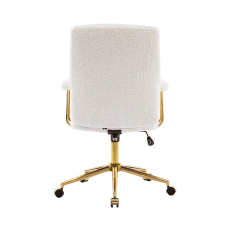 White Boucle Office Chair with Gold Base - Height Adjustable Desk Chair