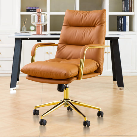 Executive Gold Office Chair - Leather Desk Chair with Armrests