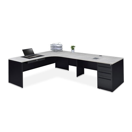Carbon L Shaped Executive Office Desk with Hutch - Durable Laminate Computer Desk