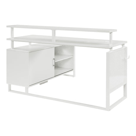 Ace Contemporary Modern Home Office Desk with Shelf, L-Shape with White Finish
