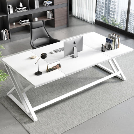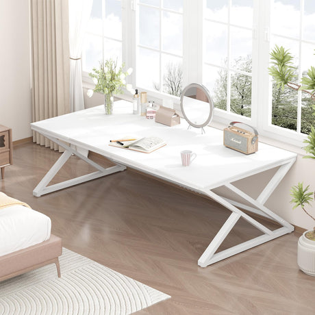 White 70.8" Computer Desk, Modern Large Long Wood Metal Office Desk